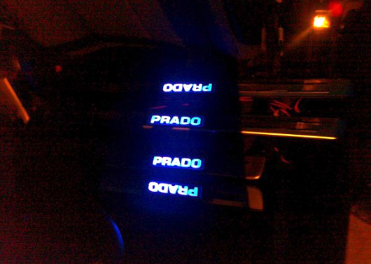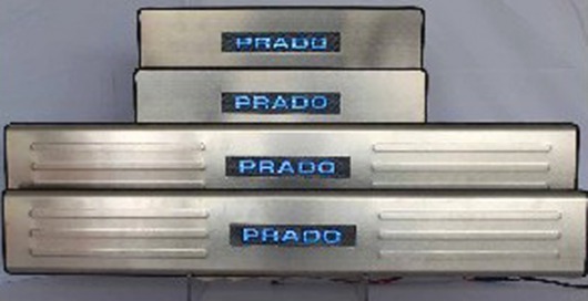 Светящиеся накладки на пороги Toyota Land Cruiser Prado 150 не входят ни в одну комплектацию этой модели автомобиля. Они органично впишутся в интерьер вашего автомобиля, дополняя светящиеся элементы панели управления, и позволят вам сделать свой автомобиль еще более оригинальным и стильным. Каждое открытие двери будет сопровождаться теплым синим светом. Кроме того, накладки оснащены специальными полосками, которые обеспечивают плотное соприкосновение ноги и порога.