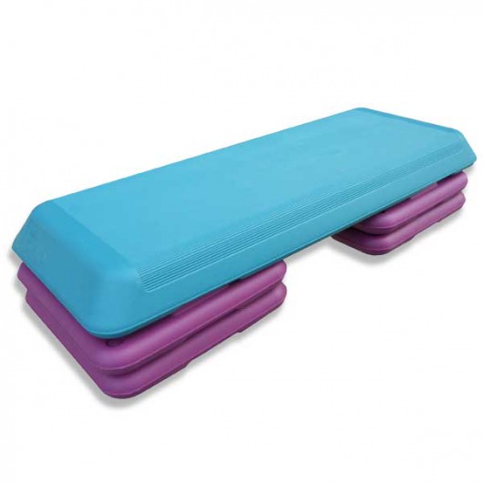 Вы можете регулировать высоту степ-платформы, выбирая один из 3 возможных уровней. Высота платформы определяется в зависимости от уровня подготовки, комплекса упражнений и интенсивности нагрузки, чем выше высота степ-платформы, тем больше нагрузка и эффективность упражнений. Кроме того, вы можете увеличить нагрузку за счет использования гантелей или утяжелителей.