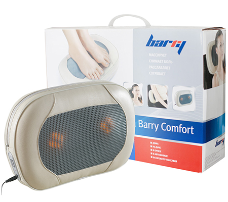 Массажная подушка Barry Comfort  для различных видов локального массажа, отлично снимает стресс и напряжение в мышцах. Массаж осуществляется с помощью специальных массажных роликов. Кроме того, массажная подушка настолько интенсивно массажирует, что вы не ощутите разницы между традиционным массажем и массажем, сделанным Barry Comfort. А функция прогрева порадует вас в холодную пору года. Массажная подушка очень компактна и вы можете использовать брать ее с собой и проводить массаж не только, но на работе и даже в дороге.