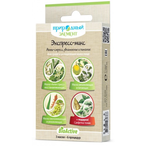 Экспресс-микс — это восстанавливающая и увлажняющая маска «Анти-стресс», гель-маска увлажняющая и питающая, гель-маска омолаживающая и увлажняющая, увлажняющая салфетка-тоник (в подарок).