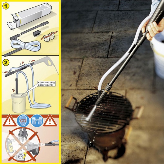 Представляем Вашему вниманию комплект для струйной очистки Karcher, или насадку-пескоструйку. Прибор предназначен специально для аппаратов высокого давления Karcher 2-7 класса. Эта уникальная модель заменяет собой целый пескоструйный аппарат! Всасывающий шланг имеет длину целых 2 метра. Поэтому можете свободно работать, не перетягивая каждый раз за собой всю мойку.