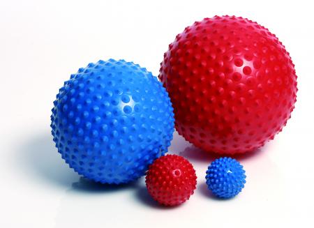 Массажные гимнастические мячи. Имеют неровную, в пупырышек, поверхность, поэтому кроме нагрузки на мышцы обеспечивают массажный эффект, улучшают обмен веществ и кровообращение.