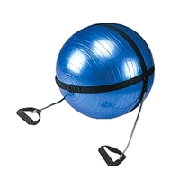 Существуют мячи с резиновыми амортизаторами (специальными ремнями с прикрепленными к ним пружинами), которые используют для усиления нагрузок на мышцы спины.